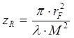 レイリー長はビームの断面積が集光点における断面積の2倍になる位置とビームの集光点の間の距離です。